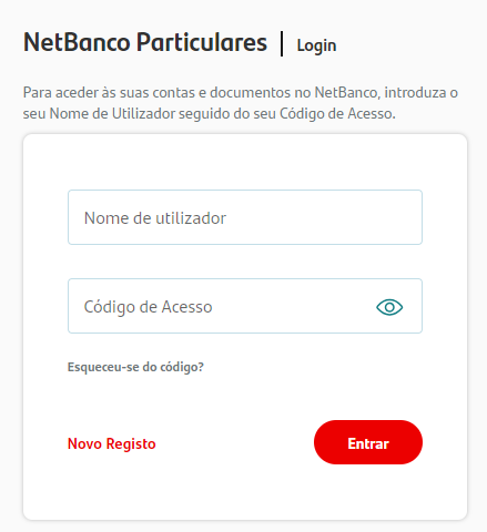 - No menu superior, clique em “Entrar no NetBanco” e escolha “Particulares” ou “Empresas”;