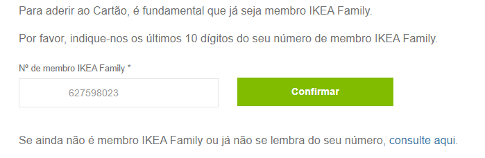 Depois, você será redirecionado para a página da Oney, onde deverá preencher seus dados. O primeiro passo é informar os últimos 10 dígitos do seu número de membro do programa IKEA Family.