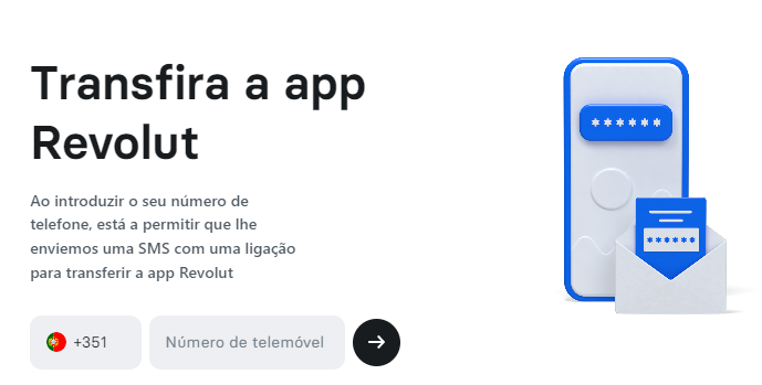 Além disso, ao clicar no botão “Obter a Revolut”, você pode inserir seu número de telefone no formulário. Depois disso, você receberá o link oficial do aplicativo pelo número fornecido e poderá abrir sua conta e solicitar o cartão através dele.