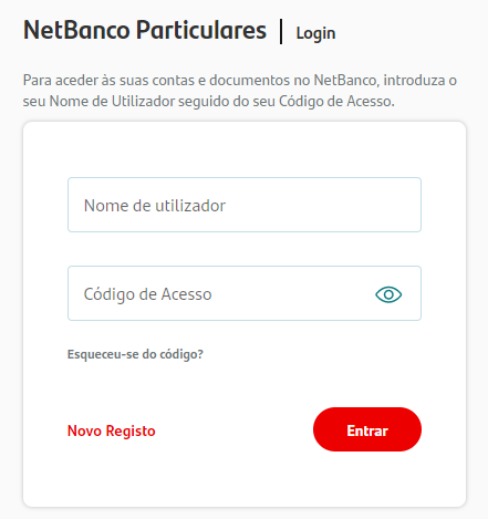Você será direcionado à página de login no homebanking. Se já possui conta no Santander, assim como no serviço NetBanco, basta informar seu nome de usuário e senha.